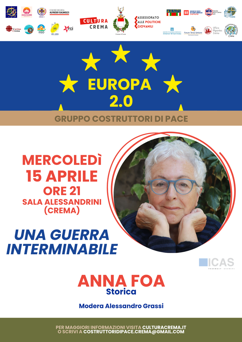 Incontro del ciclo Europa 2.0 – Gruppo Costruttori di Pace con la storica Anna Foa. Modera Alessandro Grassi.