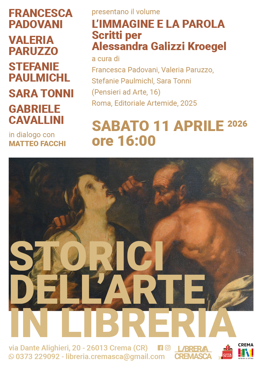 Presentazione a cura di Francesca Padovani, Valeria Paruzzo, Stefanie Paulmichl e Sara Tonni (Pensieri ad Arte, 16; Editoriale Artemide, 2025), con interventi di Francesca Padovani, Valeria Paruzzo, Stefanie Paulmichl, Sara Tonni e Gabriele Cavallini; dialoga Matteo Facchi. Rassegna “Storici dell’arte in libreria”.