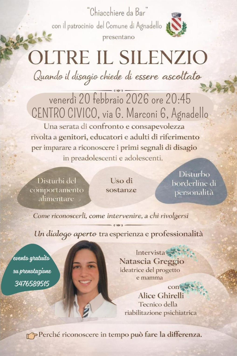 Serata di confronto e consapevolezza per genitori, educatori e adulti di riferimento sui primi segnali di disagio in preadolescenti e adolescenti.