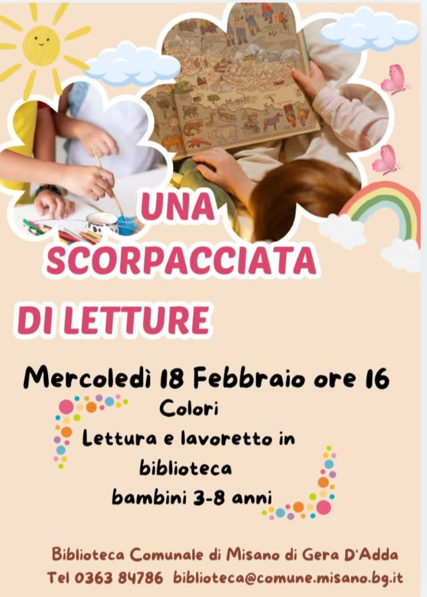 Info e prenotazioni: Tel 0363 84786, biblioteca@comune.misano.bg.it