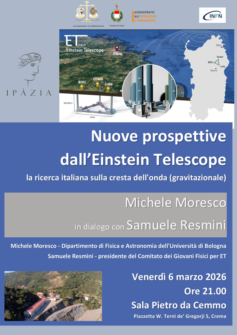 Conferenza “Nuove prospettive dall’Einstein Telescope: la ricerca italiana sulla cresta dell’onda (gravitazionale)”. Michele Moresco (Dipartimento di Fisica e Astronomia, Università di Bologna) in dialogo con Samuele Resmini (presidente del Comitato dei Giovani Fisici per ET).