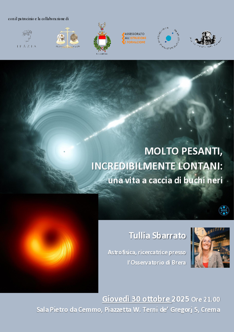 Conferenza con Tullia Sbarrato, astrofisica e ricercatrice presso l’Osservatorio di Brera, sulla caccia ai buchi neri molto massicci e lontani.