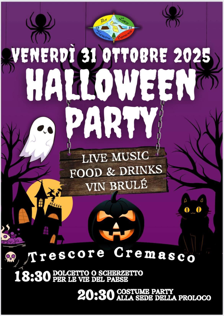 Live music, cibo e vin brulé. Alle 18:30 dolcetto o scherzetto per le vie del paese; alle 20:30 costume party alla sede della Pro Loco.