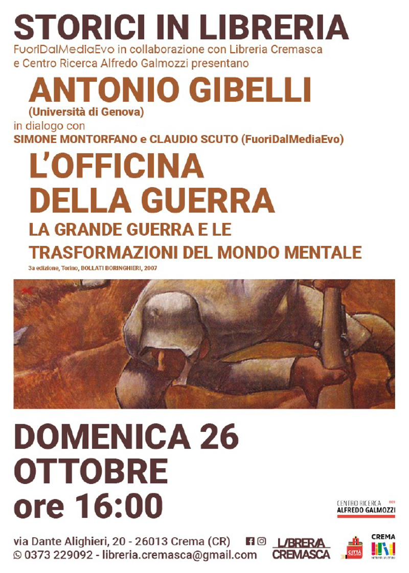 Presentazione e dialogo con Antonio Gibelli insieme a Simone Montorfano e Claudio Scuto sul libro “L’officina della guerra. La Grande Guerra e le trasformazioni del mondo mentale”.