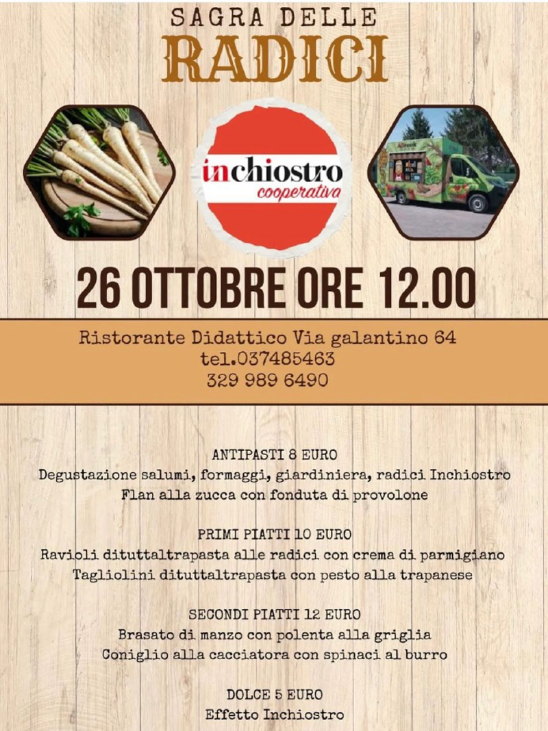 Info e prenotazioni: Prenotazione entro il 23/10/2025. Tel. 338 898 5354