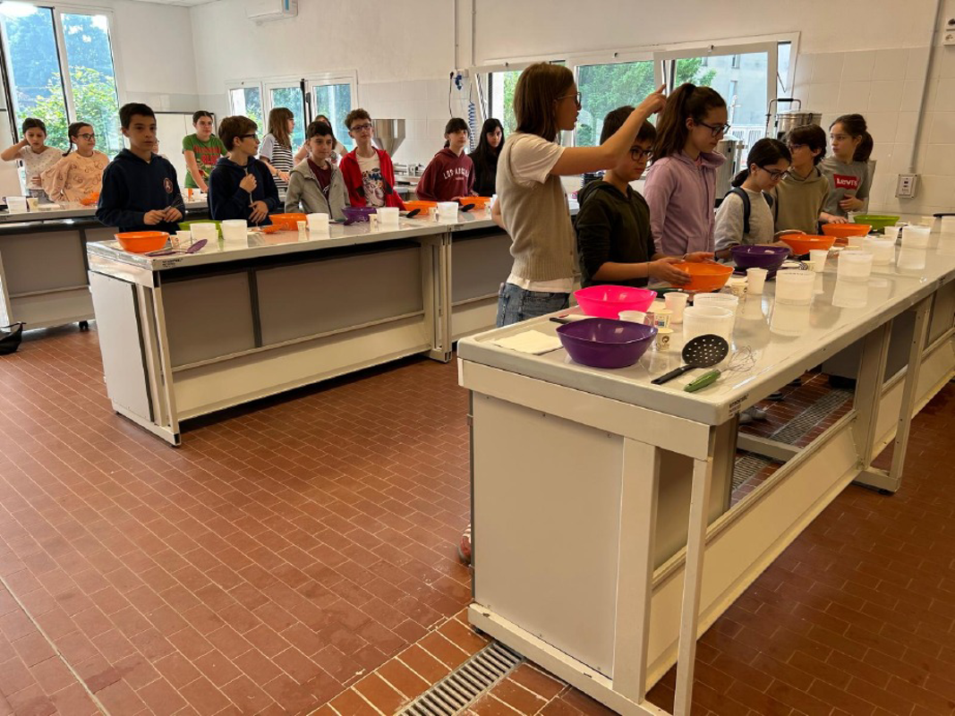 Dalle mani nel latte alla scoperta del futuro, docenti e alunni della Casearia hanno mostrato ai giovani visitatori della scuola le nuovissime attrezzature, avute dalla Fondazione Agrorisorse, e raccontato loro il percorso formativo dei quattro anni più due.