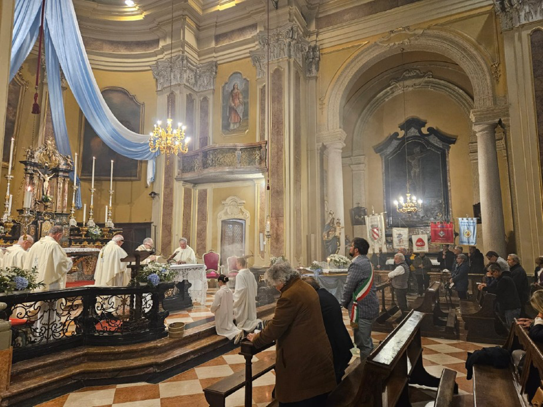 È stato don Emilio a tenere l’omelia, richiamando il senso della Sagra come festa della famiglia credente, commentando la Parola di Dio e applicandola particolarmente ai preti e ai vescovi ("Siamo servi"), e ricordando il suo servizio ad Agnadello.