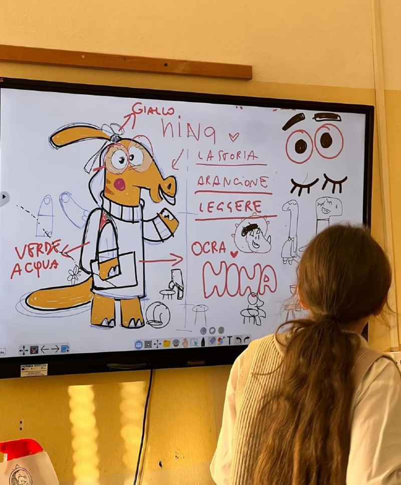 L’idea è stata quella di creare una serie di personaggi che indicano i vari spazi di apprendimento in modo colorato e divertente, diventando così un’icona della nuova scuola.