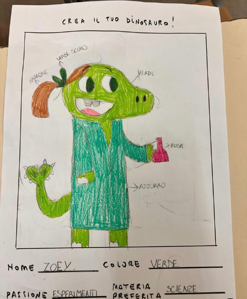 Gli scolari hanno lavorato sulla proposta grafica dei dinosauri (“Crea il tuo dinosauro”) utilizzando sia la lavagna magnetica che l’arte grafica.