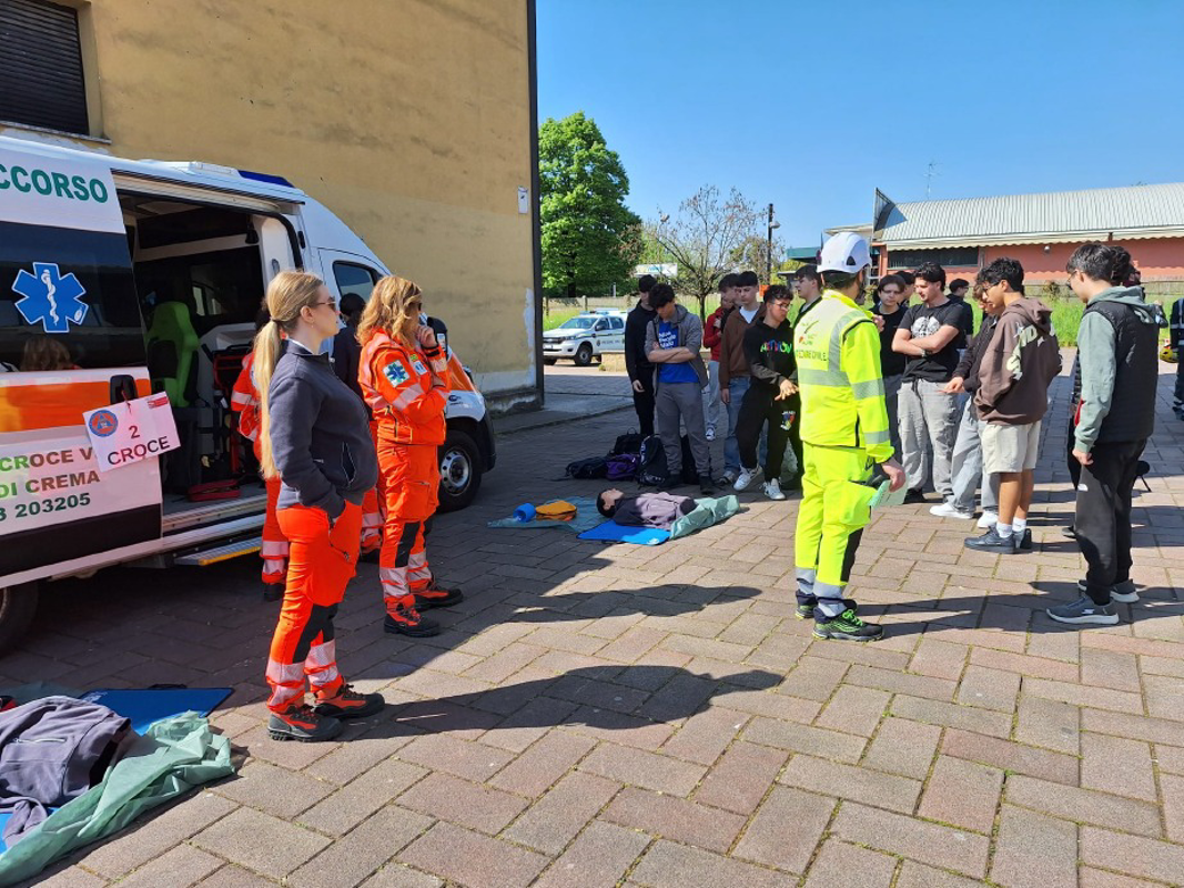 (Dario Dolci) Studenti a lezione di protezione civile. Mattinata formativa quella di oggi negli spazi della sede di via Dogali dell’istituto Pacioli, dove 230 allievi delle classi quarte degli istituti Galilei e Racchetti-da Vinci hanno svolto una serie di esercitazioni sotto la guida di volontari, operatori e vigili del fuoco. L’iniziativa ha offerto un’interessante occasione per assistere e partecipare alle attività dimostrative, per conoscere i mezzi impiegati e il lavoro che viene svolto abitualmente dalle organizzazioni di volontariato coinvolte: montaggio di tende, riempimento di sacchi di sabbia per il contenimento delle alluvioni, ricerca persone con i cani, spegnimento di incendi e primo soccorso salvavita. L’obiettivo è stato quello di diffondere la cultura della prevenzione, della sicurezza e del volontariato tra i giovani. Referente dell’iniziativa è stata Elena Roberta Milanesi, affiancata dai tutor Giandomenico Iezzi, Carlo Denti, Andrea Mainardi e Silvia Bassini. Erano presenti undici organizzazioni di protezione civile per un totale di 54 volontari, oltre ai vigili del fuoco e alla Croce Verde di Castelleone.