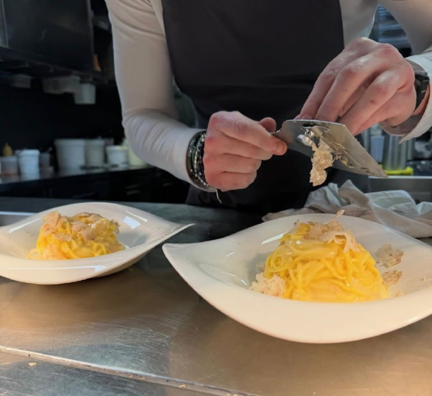 Due note interessanti: le proposte della pausa pranzo comprendono acqua, caffè e anche il dolce( un unicum nel panorama cremasco, una piccola coccola), secondo una scelta che risale a maggio 2021 e il grande successo della prima serata degustativa presentata in questo freddo gennaio: un menu dedicato al tartufo bianco del Piemonte, che ha conquistato tutti con il suo tocco personale.