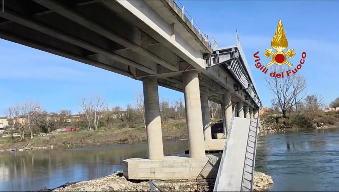 L’intervento è scattato dalla tarda mattinata. I vigili del fuoco sono arrivati con un dispositivo imponente: l’elicottero Drago del reparto volo di Malpensa che ha effettuato un sorvolo dell’area per una prima ricognizione dall’alto; contemporaneamente i droni hanno realizzato una mappatura dettagliata della zona del cedimento. In acqua sono entrati gli specialisti sommozzatori del nucleo di Torino, impegnati nell’ispezione dello specchio d’acqua sottostante la struttura per escludere il coinvolgimento di eventuali persone.