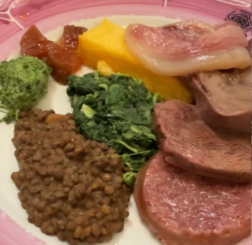 Nel piatto che parla di territorio e tradizione, oltre alla mostarda, la carne viene accompagnata da spinaci, lenticchie, a volte polenta e dall’immancabile salsa verde, preparata in casa con prezzemolo a crudo.
