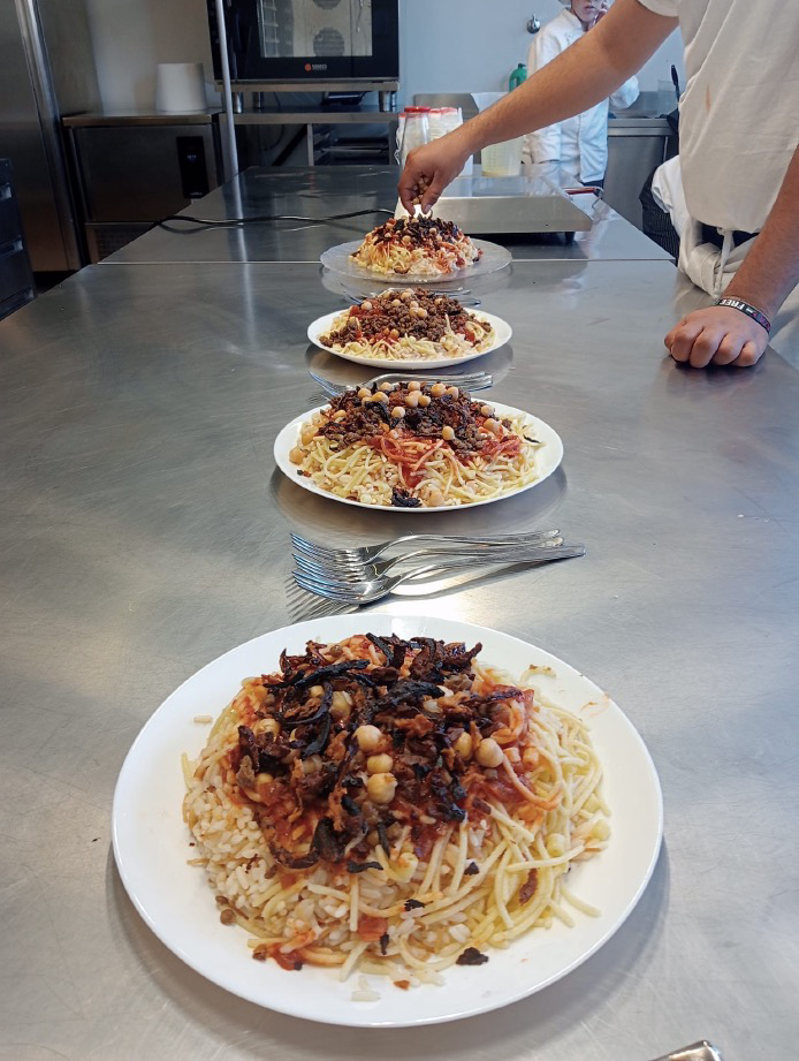 Non è mancata neppure la sperimentazione culinaria con la creazione di un piatto egiziano molto popolare, il Koshari, composto da riso, spaghetti spezzati, lenticchie, ceci, cipolle fritte croccanti e salsa di pomodoro piccante.