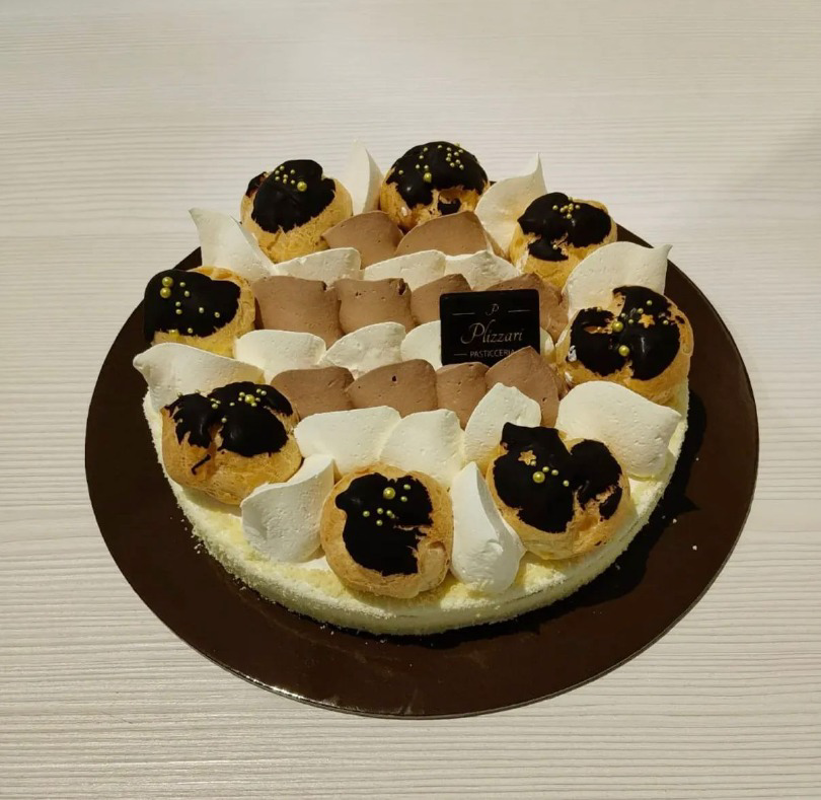 Saint Honorè anche per la pasticceria Plizzari di Montodine, con luccicanti bignè al cioccolato vestiti a festa, perfetti per una serata speciale.