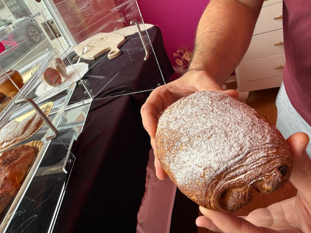 La Pastry chef infatti è particolarmente esperta nel cornetto di sfoglia all’italiana, preparata con materie prime di altissima qualità( vuoto o farcito con crema alla vaniglia, cioccolato e confettura al lampone) e nel Pain ai chocolat, amatissimo da tutti.