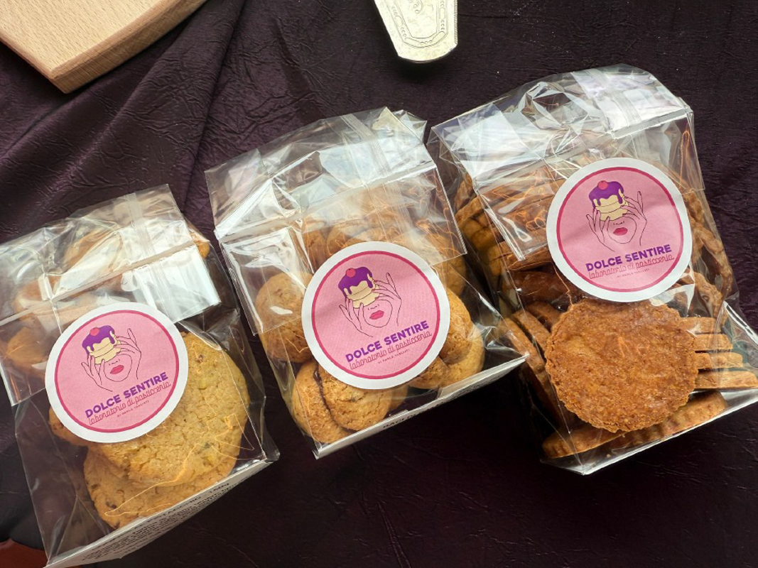Non possono mancare, ovviamente, le crostate di pasta frolla (anche in monoporzione) e una vasta selezione nella biscotteria assortita, dai baci di dama ai moderni cookies (classici e al pistacchio).
