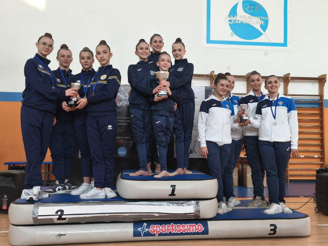 Ginevra Comanduli (classe 2015) e Alyssa Lameri (2014), impegnate su tutti e quattro gli attrezzi, hanno trascinato ancora una volta la squadra con prestazioni molto convincenti, mostrando un bagaglio tecnico di rilievo che ha consentito di ottenere punteggi elevati specialmente a trave e parallele; su questi due attrezzi si è esibita anche Martina Lodigiani (2015) che, con un'esecuzione di spessore alla trave, è stata valutata in maniera estremamente positiva dalla giuria. Solida prova per Nicole Fiammeni (2014) che ha dato il proprio contributo su tre attrezzi mostrando anche stavolta una buona tenuta di gara e un potenziale di crescita. Brillante prestazione per Vera Bulgari (2013) a corpo libero, specialità dove riesce ad esprimersi in modo preciso ed elegante; una garanzia a volteggio è invece Soleste Toninelli (2013), che anche in questa gara ha presentato due salti rivelatisi decisivi per il punteggio finale della squadra a questo attrezzo.